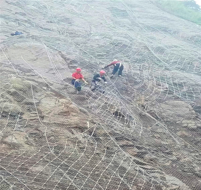 主要結構配置:鋼絲繩網、鋼絲繩錨桿、支撐繩、縫合繩、鋼絲格柵網。